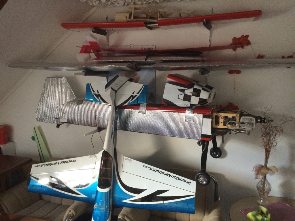 U mne visí takto. Zatím tedy jen jedno, první... Vyrobil jsem malý držák trupu, zajištěno kovovou trubičkou.