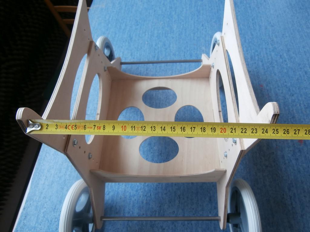 pokud se to osvědčí, ještě možná nějak dořeším možnost použít i větší kola z kočárku, mám dvě velikosti, ale na ten plac, pro který jsem to ted dělal to je zbytečné, tam je ta plocha vcelku upravená, teda pokud netrefím díru od sysla