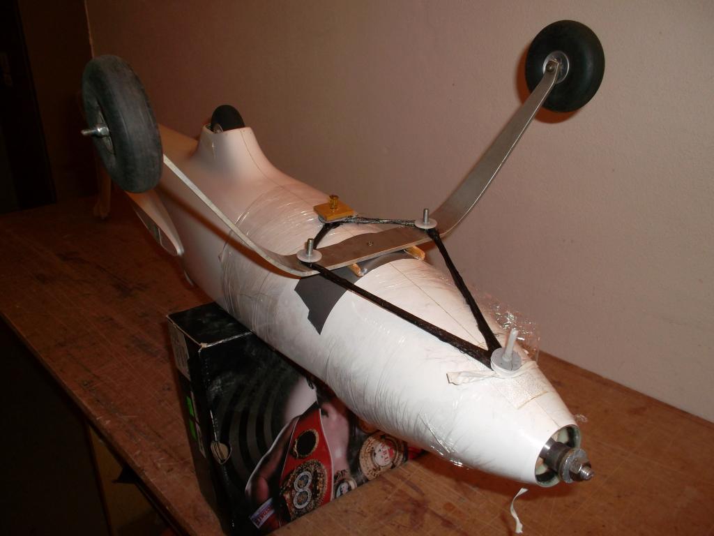 pokud bude stačit tuhost těch uhlíkových rovingu, tak to k trupu přistabilizuji pouze klíny z epp, ale spíš počítám, že to bude chtít ještě dolaminovat uhlíkovou tkaninou, nebo střed podvozku s předním uchytem propojit nějakým duralovým profilem.