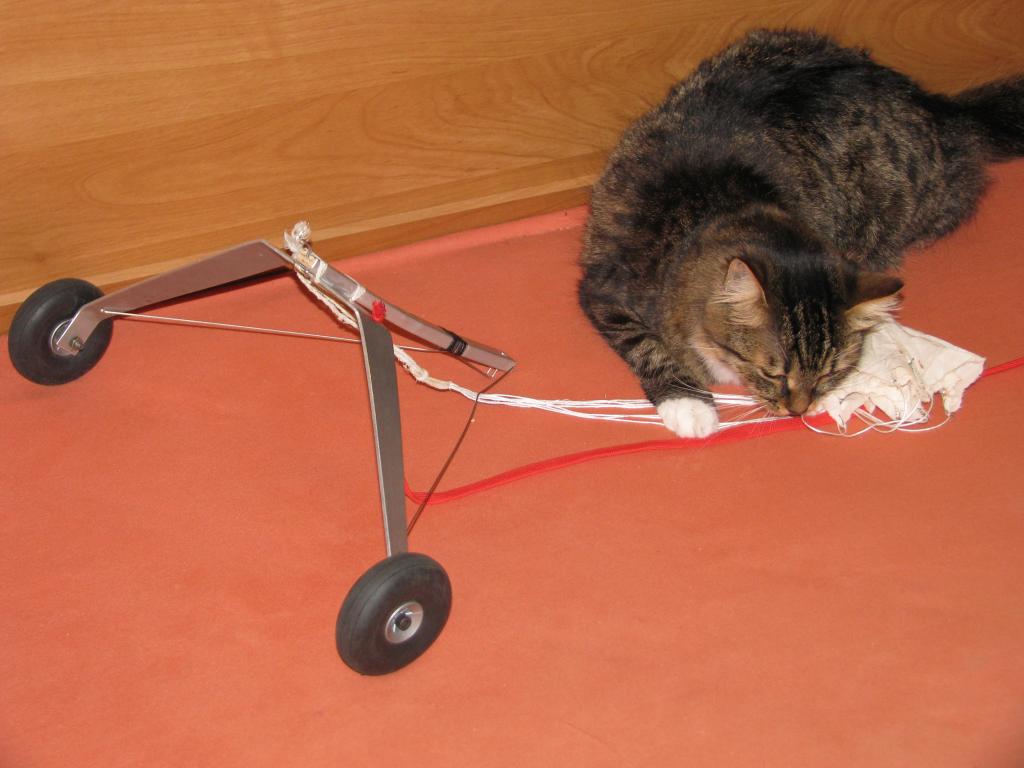 rád bych to vyřešil tak, abych vubec nemusel dělat zbytečně prulet nad startovací plochou, ale rovnou po odlepení od země to mohl odhodit, pokud to vyjde lehké, jako že by mělo, páč je to před těžištěm, místo padáku dám asi spíš pouze barevnou stuhu.