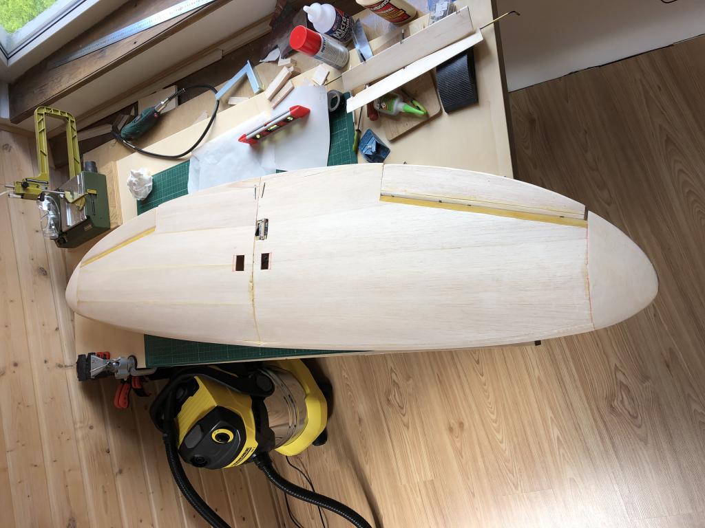 A tady už jeden z nejhezčích tvarů v letectví. Konce křídel jsou vytvarovány/vybroušeny z 12 mm balzy.