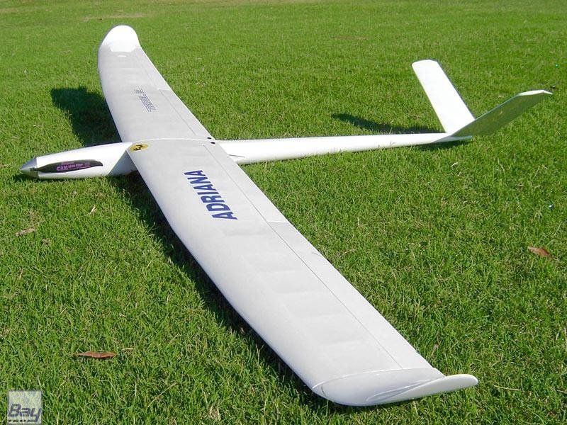 ,,ADRIANA je vysoce výkonný termický kluzák, který splňuje nejvyšší nároky. Jeho nízká hmotnost vede k dechberoucím termickým vlastnostem a pomalým letovým vlastnostem, kterých by jinak dosáhly pouze celolaminátové modely. S LiPo články s kapacitou 2000-3200 mAh jsou možné „nekonečné“ lety.