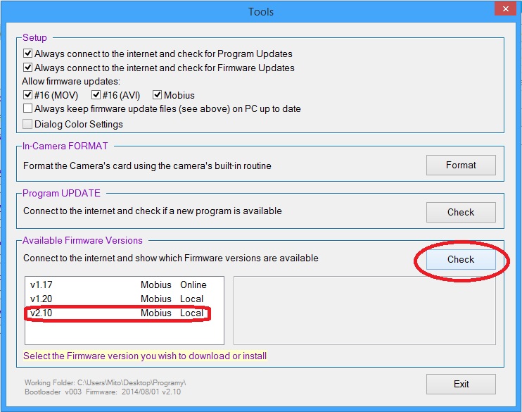 S pomocí něj se kamera nejen nastavuje a dělá se i upgrade fw. Poslední verze je 2.10