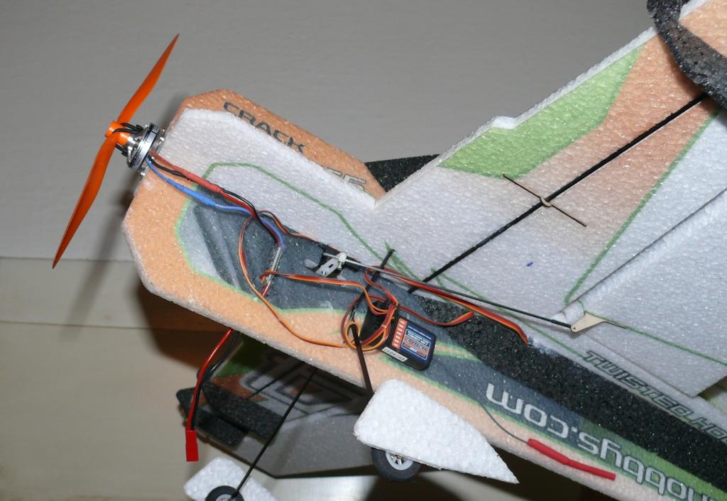 Ja sem tahal kabely vsechny spodem,ale je to otazka vkusu. Prijimac mam na trupu pod kridlem,regl primo ve spodni casti trupu (v prořezu napříč) a aku na opacne strane od prijimace. Prijimac drzi na oboustrance,aku na suchaci. Pokud nikdo neda drive fotky,tak ja vecer neco nafotim a hodim to tady.