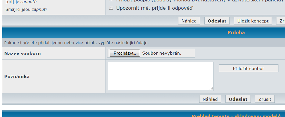 Nejdřív dáš Procházet a u sebe na PC najdeš fotku, potom dáš Přiložit soubor. Tím se nahraje na web RCMania a bude vidět.