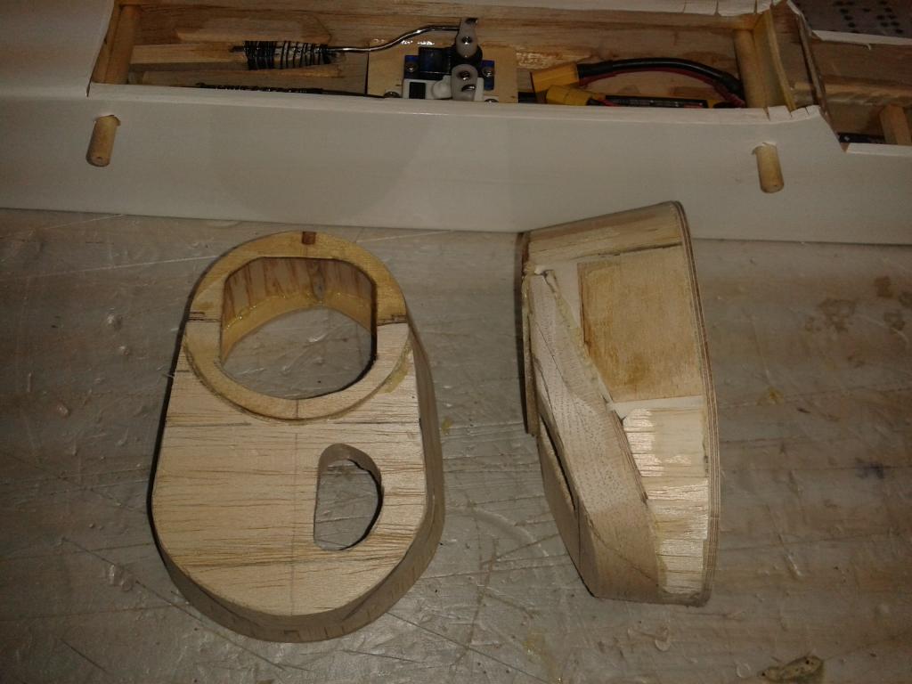 Po krátké pauze na stavbu cvičné Spectry zase kousek. Motorové kryty podlepené s nalepenou balzou 2x7mm, připravené k vybroušení tvaru.