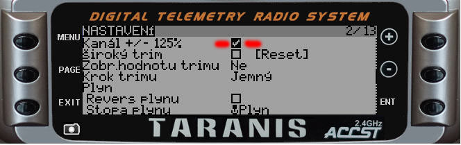 Díky kluci našel jsem to bezproblémů. Tak pro ty co váhají nad taranisem sepíšu pár postřehů. Mám jej od čtvrtka, hotový jeden jednoduchý model (skywalker X5) a apmkem - takže 6polohový přepínač, nějaké přepínače na hlášení telemetrie, zajištění motoru. Nalítáno 2 hodiny.