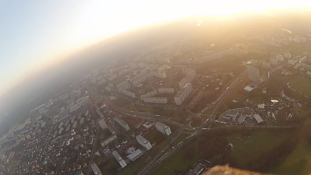 Rybí oko je lepší pro natáčení dynamičtějších scén. Moje první kamera, tzv.přívěšek na klíče měla úzký záběr a nelíbilo se mi to. Přikládám fotku ze vznášení se u Plzně. Skoro jsem si drcnul do bráchova Tora