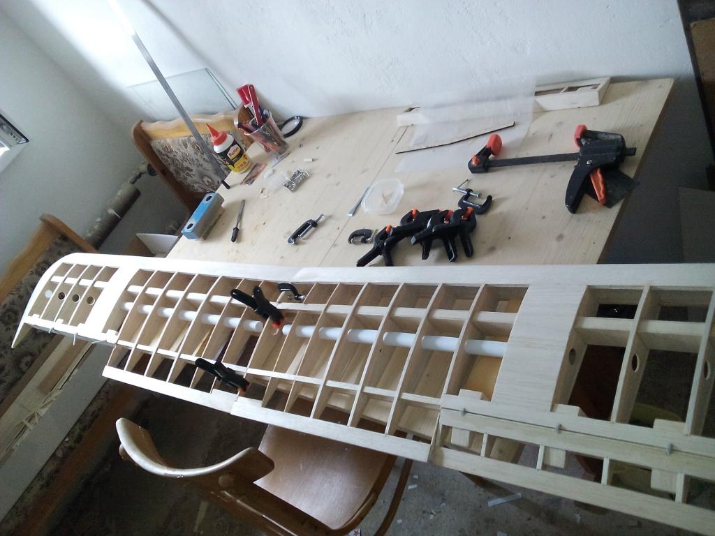 Ahoj, jen takový dotaz. Ty křídla mají nějak lepené podélníky nosníku, nebo tam ještě nějak dostaneš "trubku". Podle fotek to vypadá, že jsou k sobě slepená jen první žebra obou křídel a ty to asi neudrží.