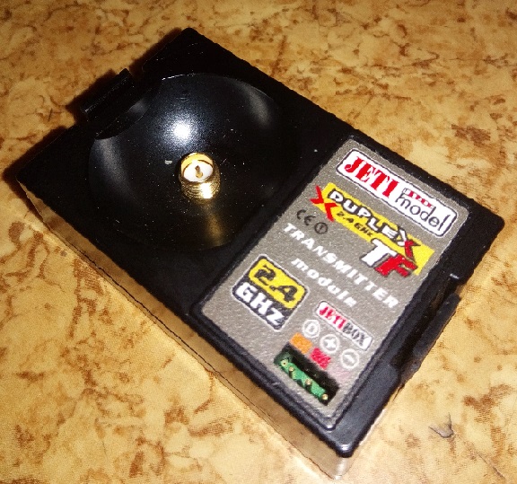 Hlásím, že Aurora 9 s JETI modulem TF chodí včetně telemetrie. Sice zatím na drátový propojce, musí se předělat připojovací konektor VF modulu aby šel zasunout do Aurory. Musí se udělat jednoduchej plošáček, stačí ho namalovat trubičkovým perem a vyleptat. Jsou na něm jen propoje mezi třema konektorama. Blbý ale je, že jeden konektor není v česku k sehnání, nemá ho ani TME a dokonce ani Farnell. Našel jsem ho akorát na Mouser a RS Component ale buď za dost drsný poštovný nebo minimální odběr 10 ks.