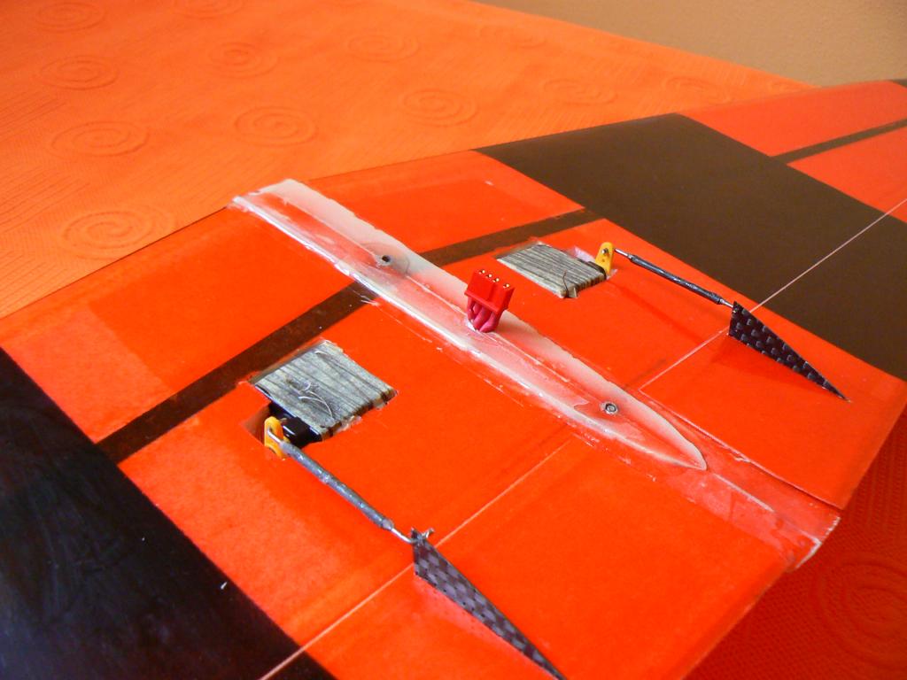 8. po rôznych pokusoch používam 4-pinové konektory Deans (Hořejší). Samicu mám vždy napevno vlepenú v krídle, samca volne v trupe, celé je to urobené tak (dĺžka kábla, výrez), že mi do trupu nezapadne a dá sa v pohode pripojiť ku krídlu bez nástrojov