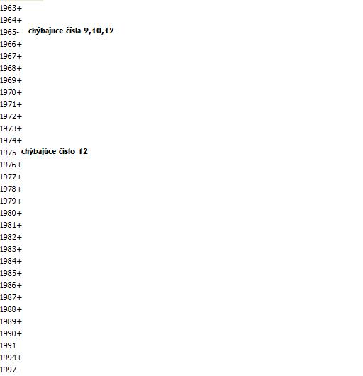 ročník 1975 mám už kompletný ako som pozeral na uložto maly by tam byť čísla od roku 1963 po 1991.