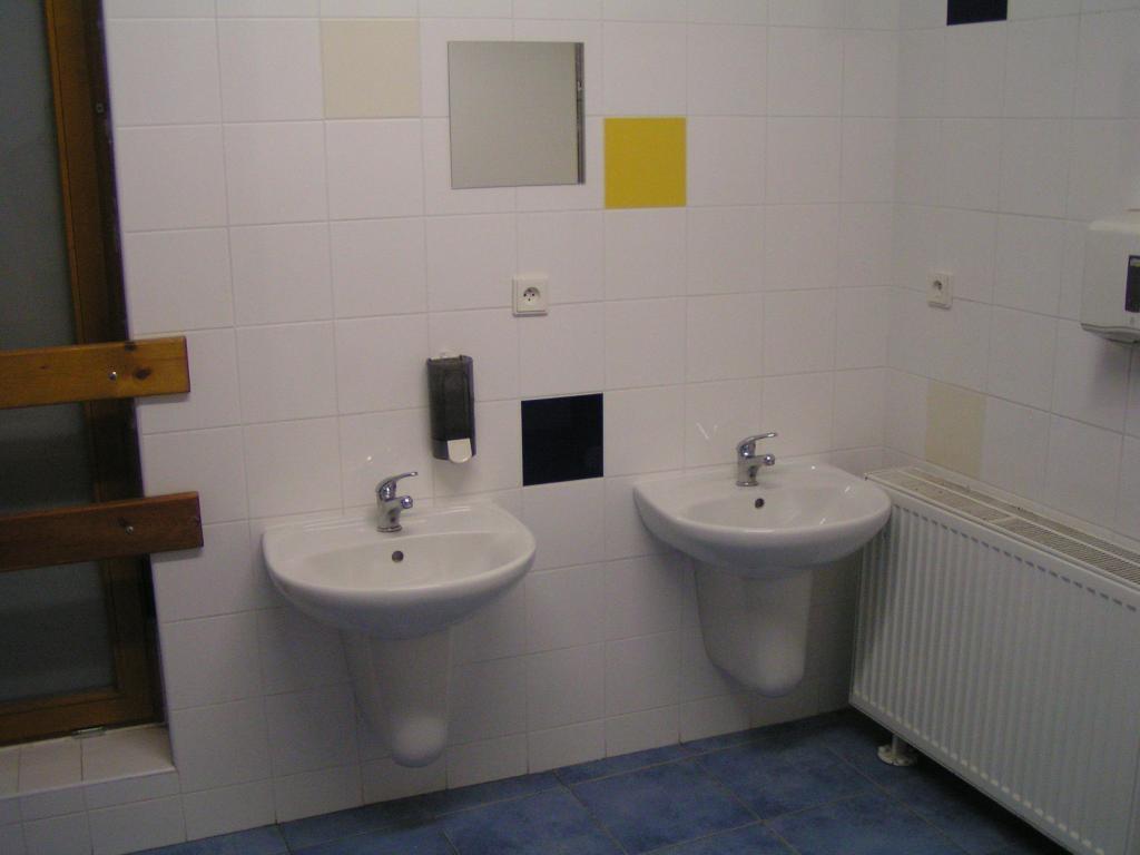 Pokračování informačních fotek z místa konání rakovnického GeeBee Cupu - zázemí pro v hale ubytované. Socální zázemí včetně 2 WC je ve dvojím provedení - pro hochy a pro dívky. A jako doprovody budou nocovat i dívky.