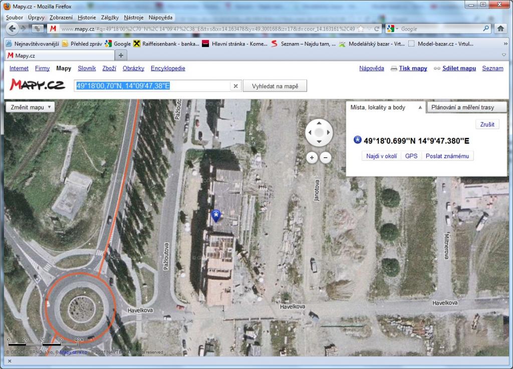 dole na obrázcích je vidět jak to ukazuje. Když tyto údaje zadáš do map na Seznamu nebo Google maps, uvidíš že model právě sedí u mě na balkoně