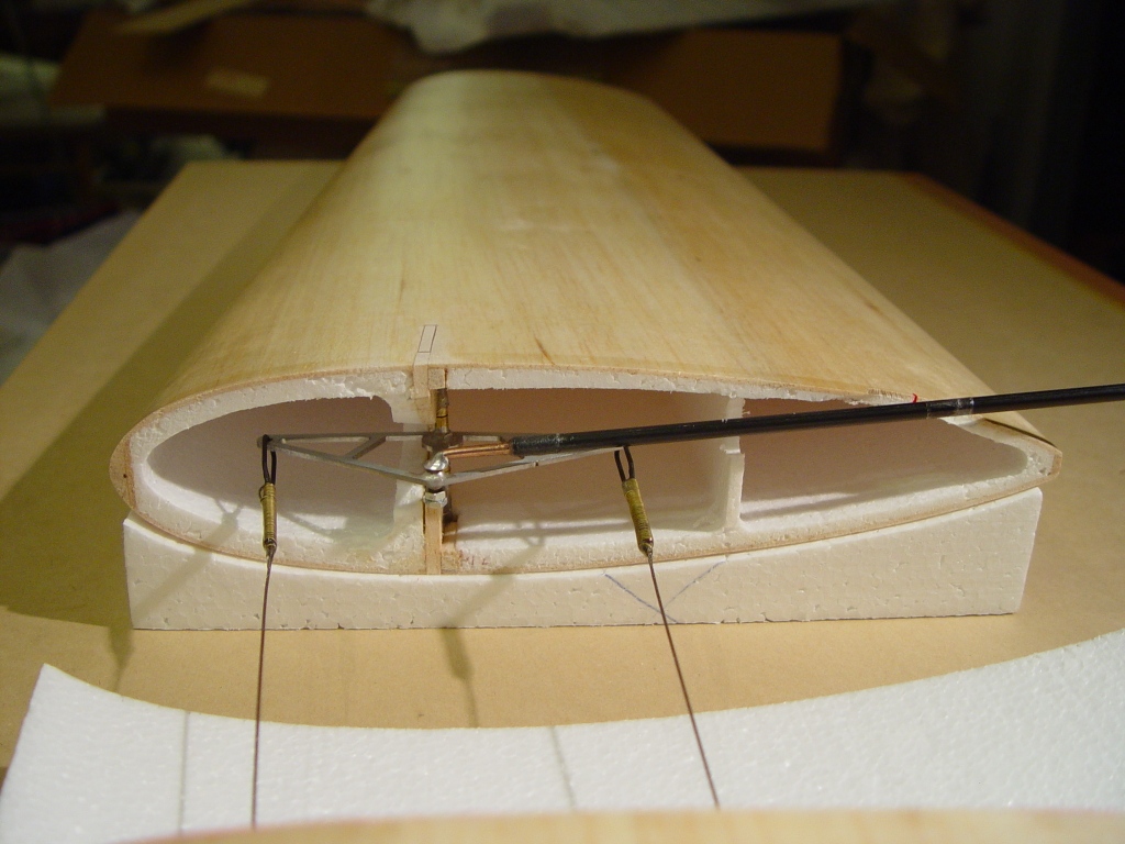 kridlo sa zlepi v sablone z vyrezov a prelaminuje sa spoj ... tak aby sklo upevnilo pomocnu stojinu Tcka ku kridlu