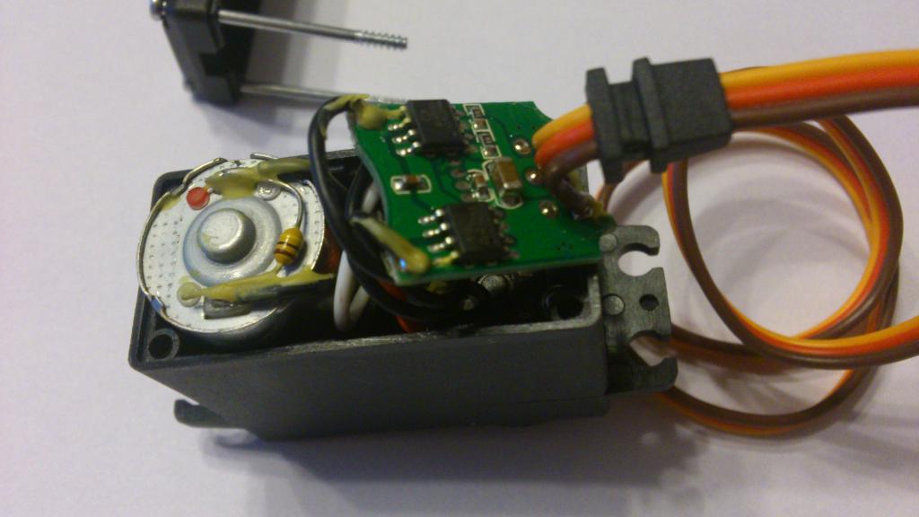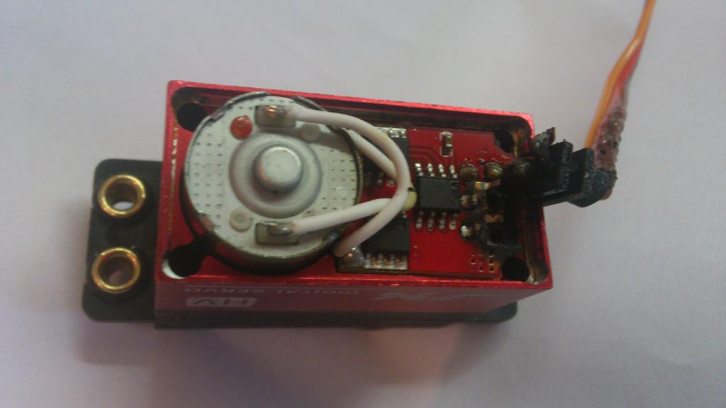 Pozrel som ostatne, privodne kable su len priletovane k doske , ziadne zaistene nejakou hmotou a pritom napnute do gumovej priechodky, ktora ako by bola este aj mala do otvoru v tele serva. Inak telo serva je hlinikove. Kable som na ostatnych zaistil tavnou pistolou.
