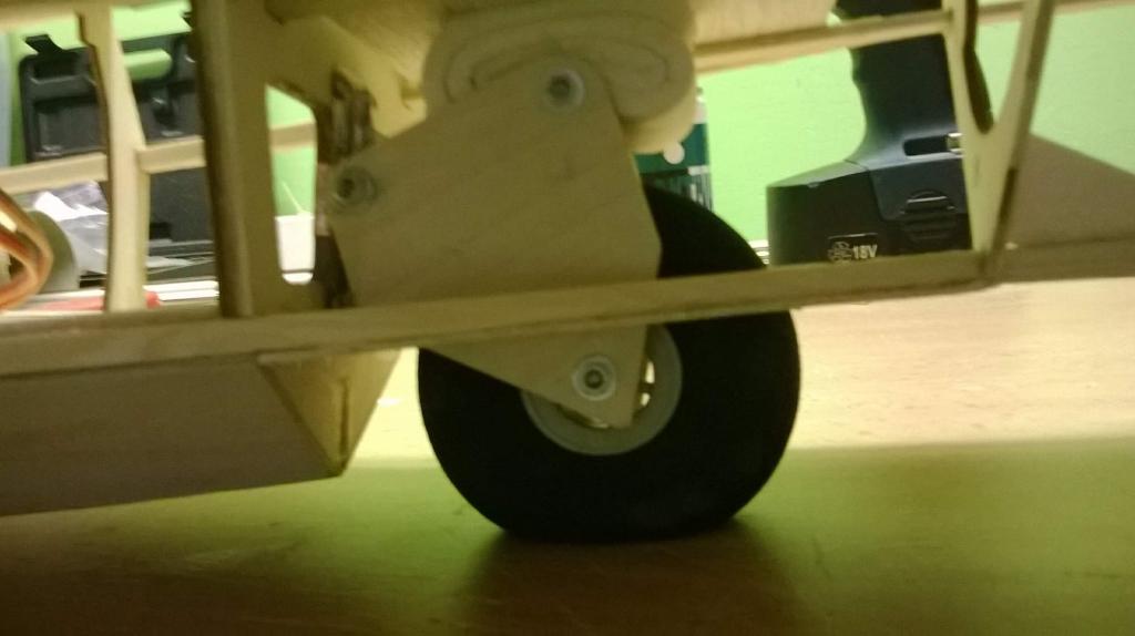 s velkým ramenem jsem to zkoušel, ta botka (tj. kolo) je dost dole oproti základnový desce v trupu(dno), navíc je to středoplošník(skoro dolnopnlošník), tak nevychází místo na plynovou pružinu, aby se vzpírala o spojku křídla. Pružiny naležato by se hodily...