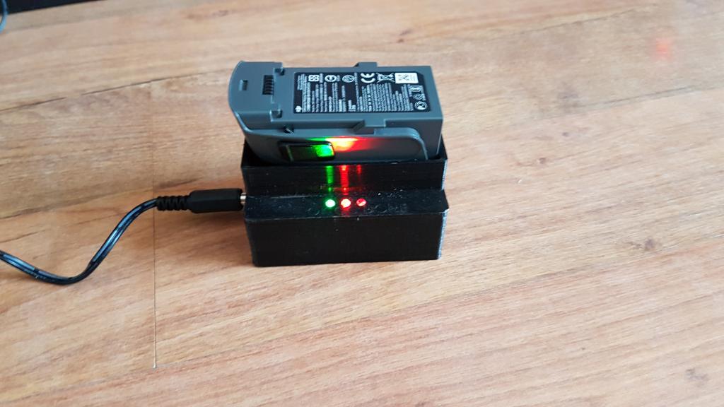 ... Ovšem s tímto jsem se nesmířil a jal se vývoje vlastní nabíječky. Akumulátory mají totiž zespodu kontaktní plošky pro dock který ještě Dji nevydal. Stačilo zjistit zapojení. Po chvíli bádání a měření bylo jasno a stačilo nakreslit a vytisknout kolébku pro akumulátor a zhotovit CC\CV zdroj.. Dále jsem vyzkoušel mezní hodnoty proudu a napětí které akumulátor akceptuje.. Maximální nabíjecí proud je 2,5A a maximální napětí přivedené na kontakty je 13,4V , pokud se jedno nebo druhé překročí zareagují integrované ochrany, akumulátor vybliká kód chyby (nadproud, přebíjení) a odpojí zdroj.. Pak už vytvoření nabíječky nic nebránilo.. Použil jsem mírně upravené zapojení nabíječe LiIon od Miloše Zajíce. Toto funguje ale nabíjecí proud je 1,2A což mi nevyhovuje a pro větší proudy už se zapojení moc nehodí a navíc není možné používat nabíječku v autě kvůli nízkému napětí.. Nakonec jsem pořídil tento https://arduino-shop.cz/arduino/1328-lm ... 85515.html CC\CV zdroj kde jsem nastavil omezení proudu na 2A a koncové napětí na 13,2V. K tomuto zdroji jsem přidal Step-UP měnič který zvyšuje na 15V a díky tomu je možné nabíjet akumulátor i ve vozidle ze zapalovače. Akumulátor sám automaticky ukončuje nabíjení a odpojí se od nabíječe při plném nabití. Cena tohoto nabíjedla je lidových 200CZK