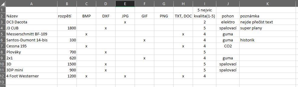 Jedná se o letadla (makety, trenéři, větroně, házedla, elektro, spalováky, poháněné gumou, experimentální modely,atd.), historické plány např. z roku 1935.