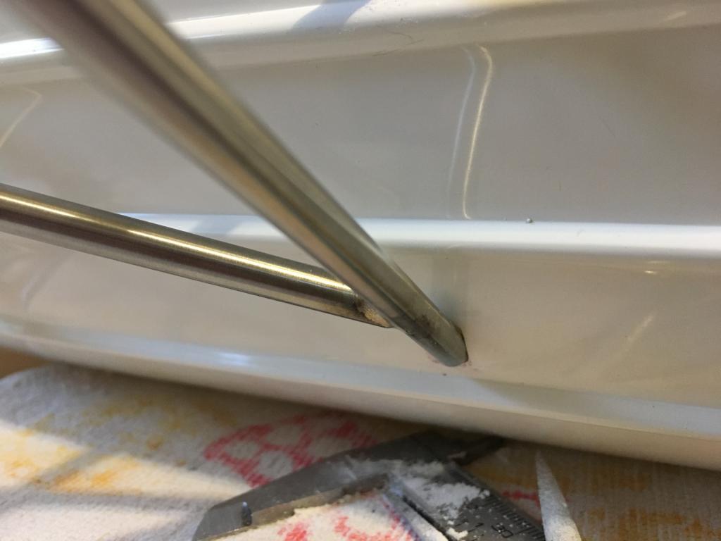 Dnes jsem udělal díry na stupačky a je to vše těsné ale tak i tak je tam trochu vidět mezera ( přesnější díru už udělat neumím)