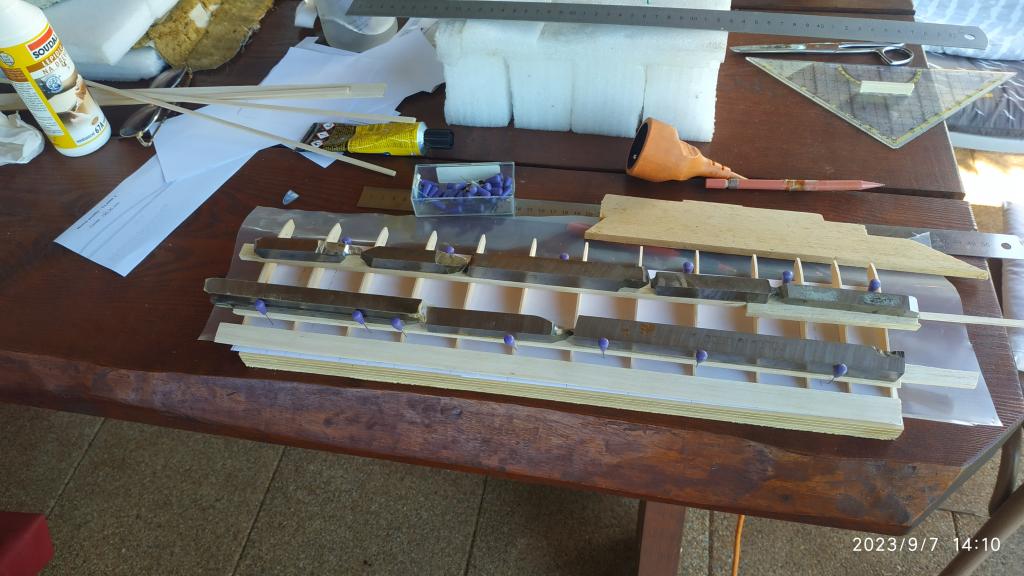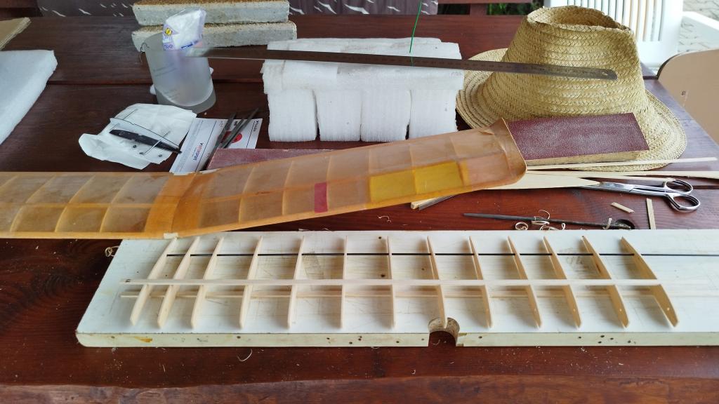 Idem skúsiť urobiť nové krídlo. Rozpätie 840mm a hĺbka 125mm. Zatiaľ mám len rebrá vybrúsene.