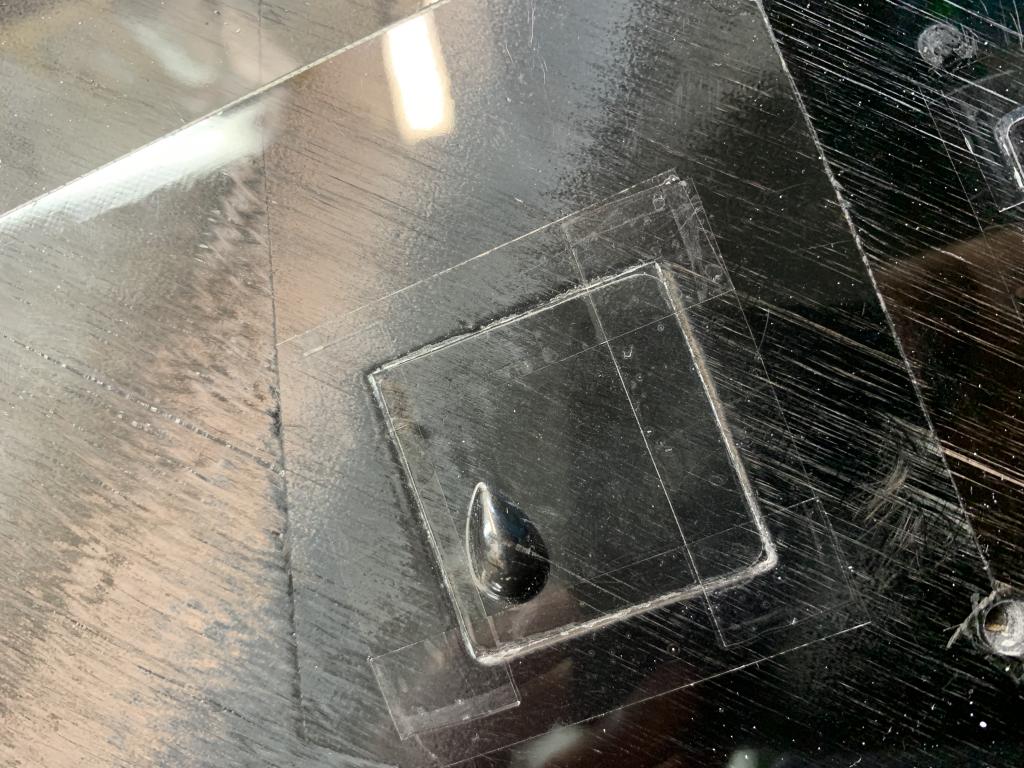 Krytka serva chtěla jen jemně dobrousit, lepím ji pomocí průsvitné pásky.