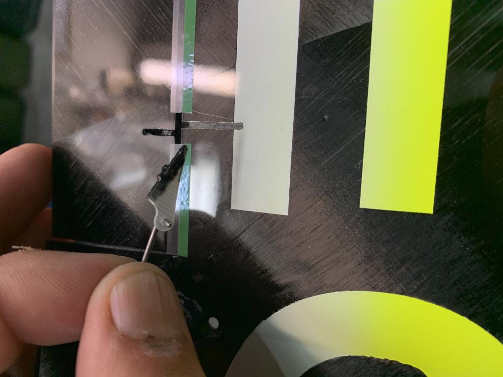 Pokračuji zalepením dodaných pák křidélek, které před zalepením je potřeba osadit dodaných táhly. Potom by je tam nikdo nedostal.