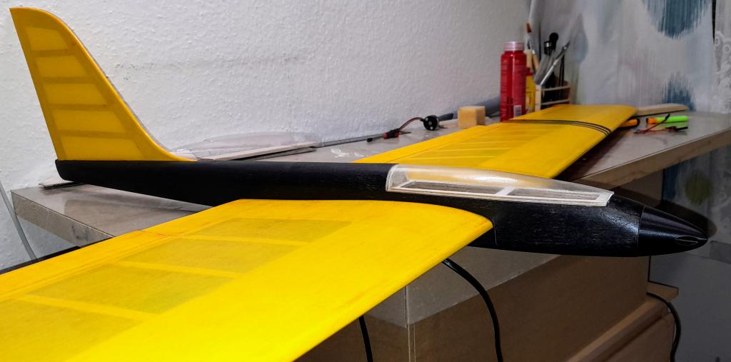 Napadlo mě pokusit se stvořit samokřídlo s víceméně rovným křídlem, bez té šípovitosti. Výjimečně postavím i trup a protože se rovného křídla trochu bojím, dostalo to i směrovku. Taky výjimečně