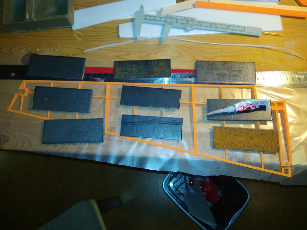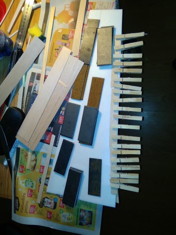 1. slepime k sobě na rovné podložce 3 díly vytištěné žebrové konstrukce (řídkým vteř. prostě jako balsu)
