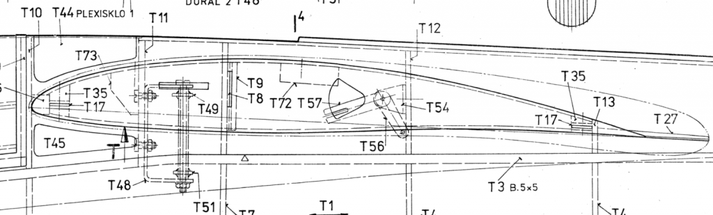 2) Profil křídla - origo profil je laminární, ten na modelu nebude úplně fungovat, jelikož vycházím z plánku (a částečně i konstrukce) Fary, tak jeho profil, docela podobný origo profilu, ale kolem 12,5% (také má nejvyšší tloušťku posunutou dost dozadu).
